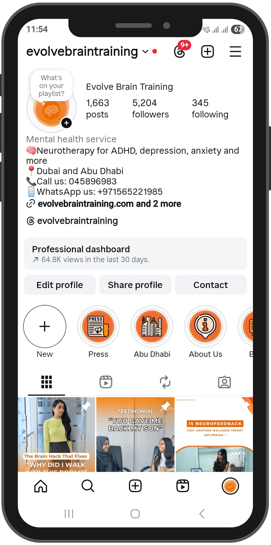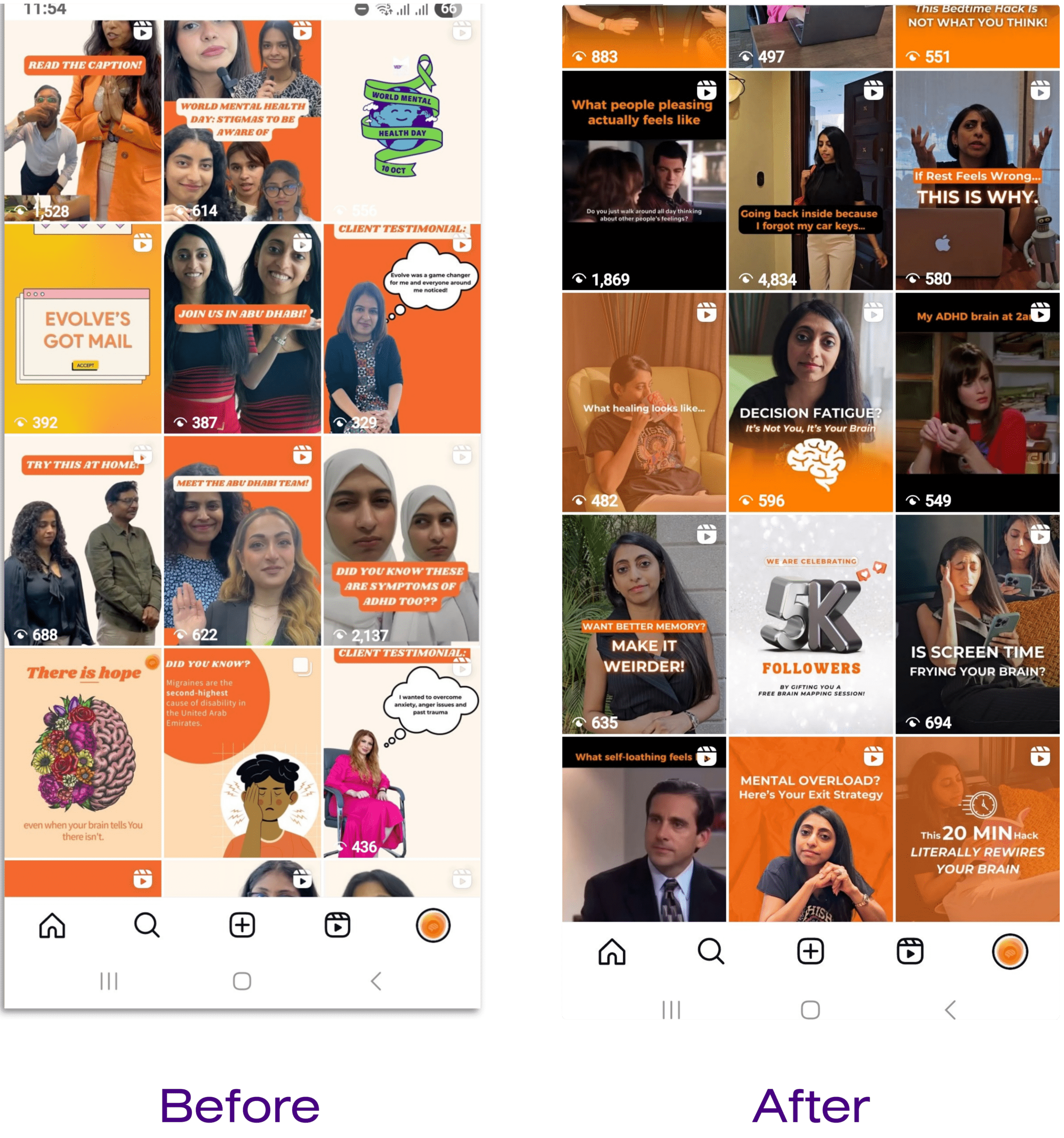 - Top-performing Reels: “What ADHD looks like in adults” and “Mental overload explained” with 1.7k+ views and 80+ likes