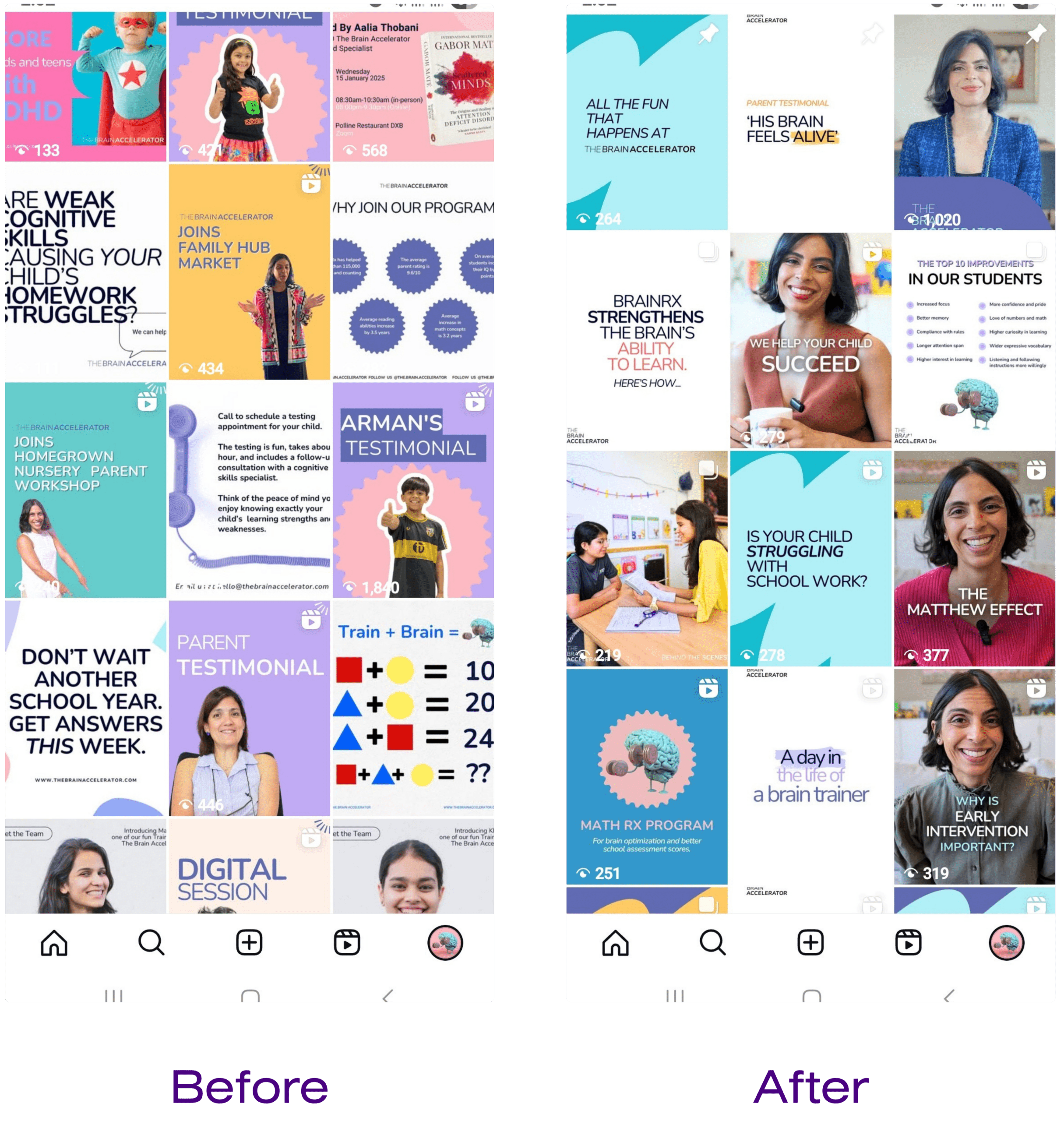 They needed consistent, professional looking visuals and posting across 5 platforms, with a focus on educational and trust-building content around BrainRx to strengthen their ads strategy.